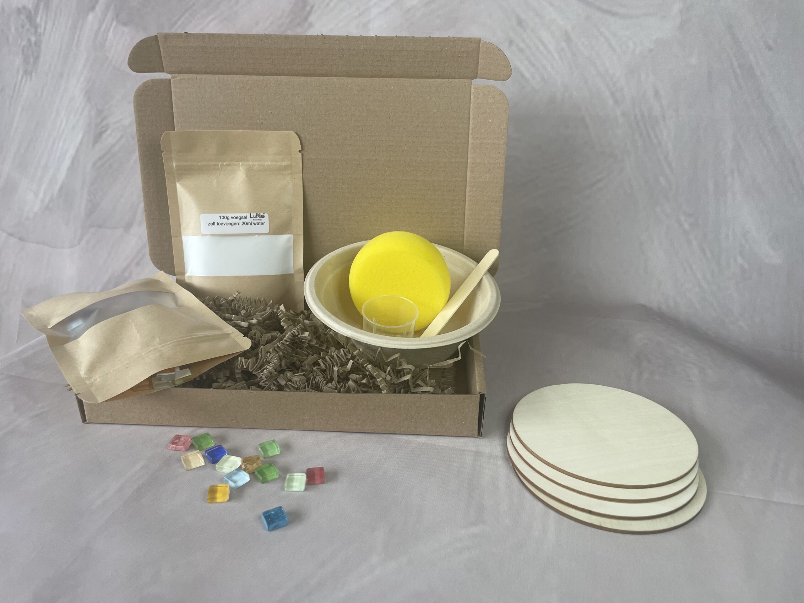 Maak zelf vier stijlvolle mozaïek onderzetters met dit complete DIY pakket van Luno-Handmade. Het pakket bevat houten onderzetters, gekleurde mozaïekstukjes, lijm, voegmiddel en alle benodigde materialen om direct aan de slag te gaan.