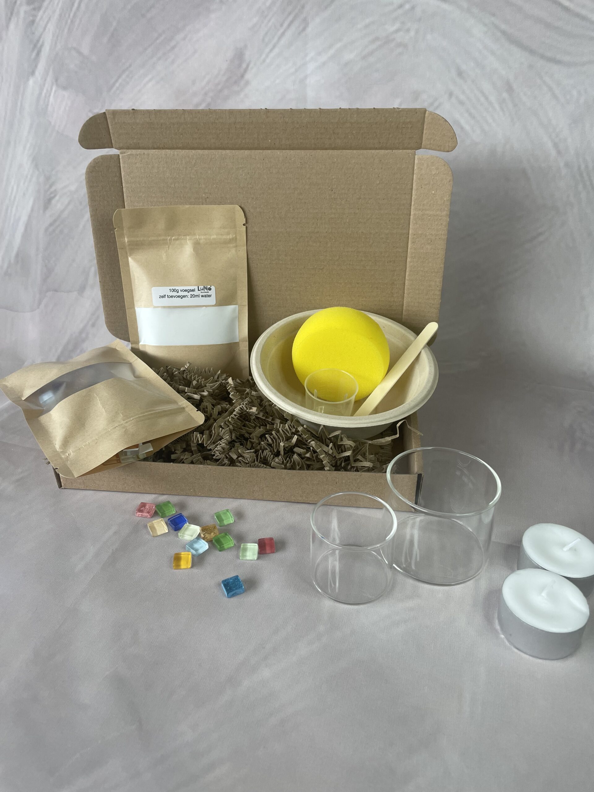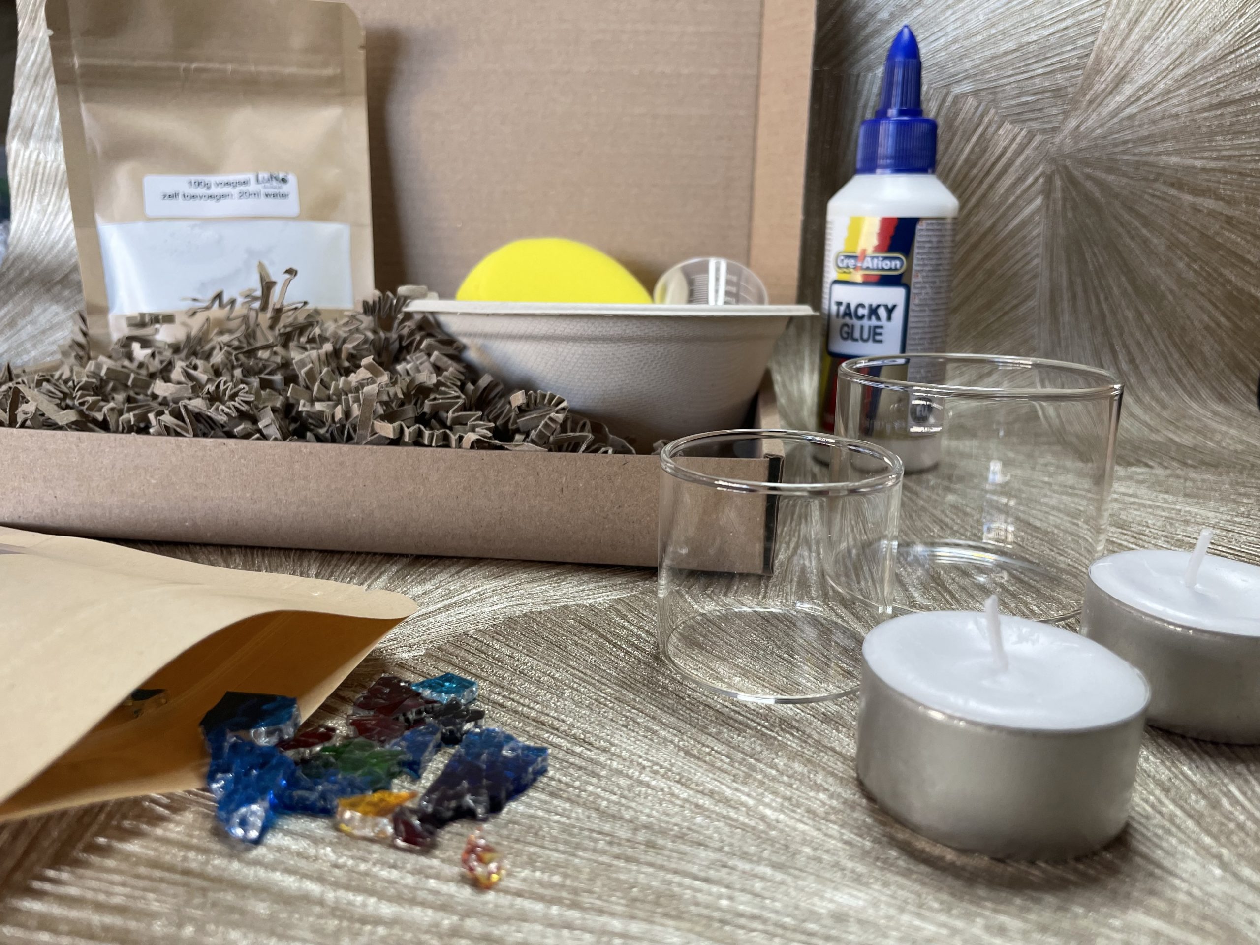 Met dit complete DIY mozaïekpakket maak je eenvoudig je eigen prachtige sfeervolle waxinelichthouders | luno rainbowglow – een echte eyecatcher voor in huis!