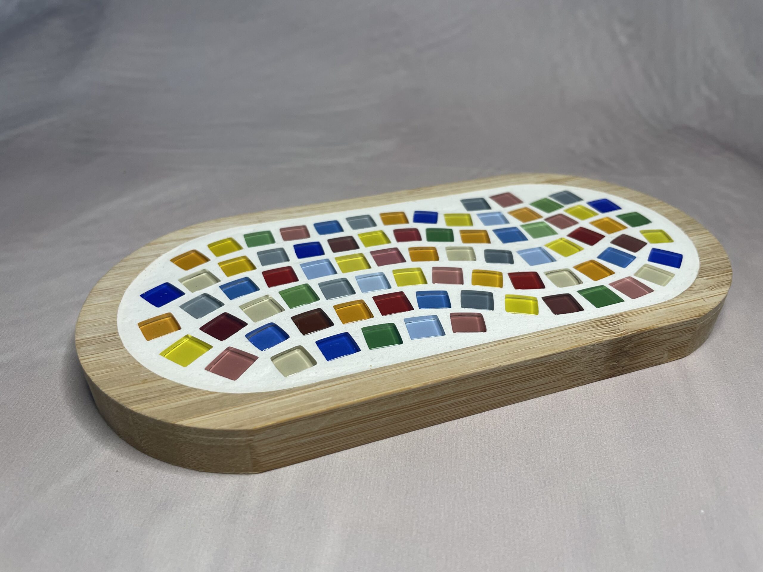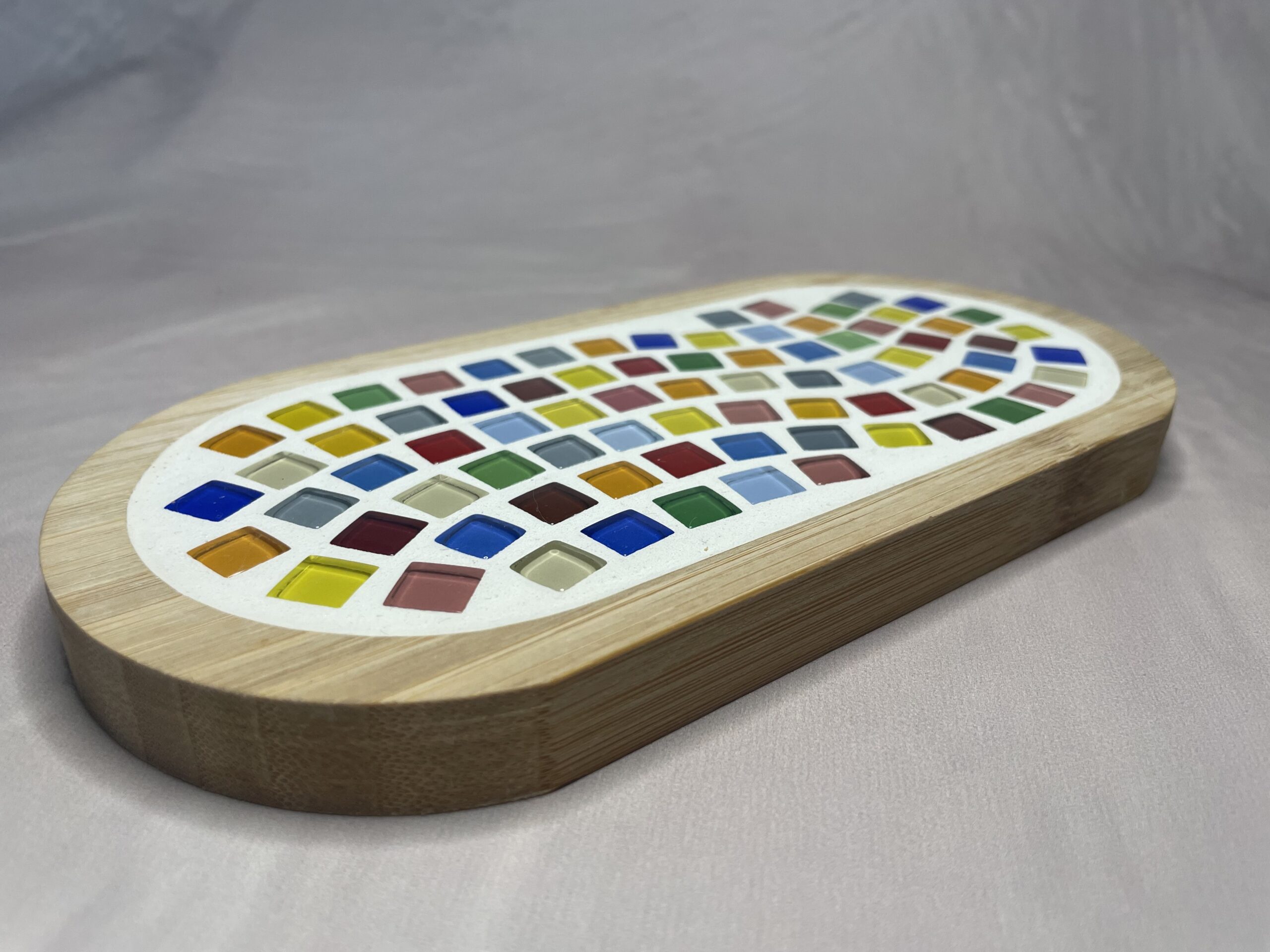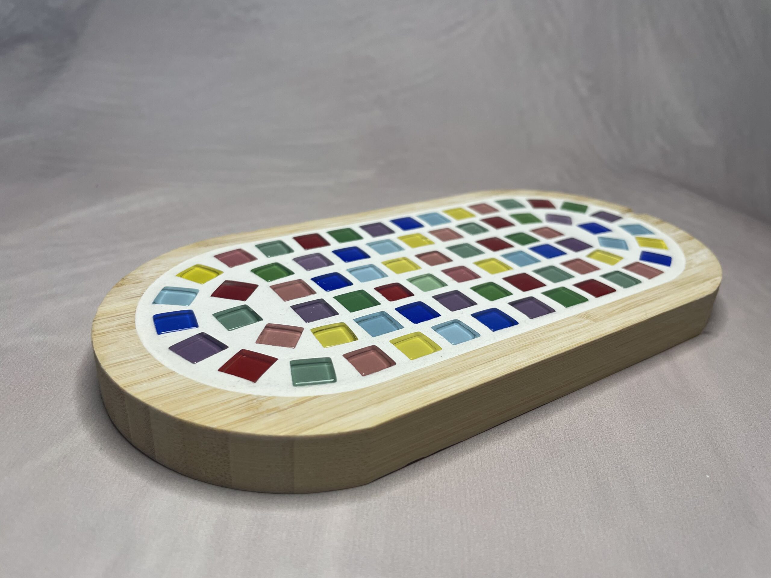 Dit mozaïek plateau borrelplank is met de hand gemaakt en daardoor stuk voor stuk uniek. De zorgvuldig geplaatste mozaïek steentjes geven elke plank een karaktervolle en luxe uitstraling, ideaal om hapjes, kazen of tapas op te serveren.